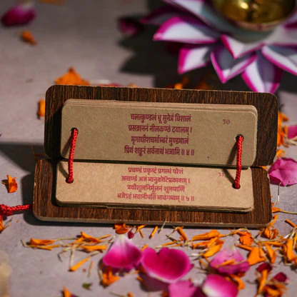 (I recite these forty verses every morning with devotion. O Lord of the Universe, please fulfill my heart’s desires.)